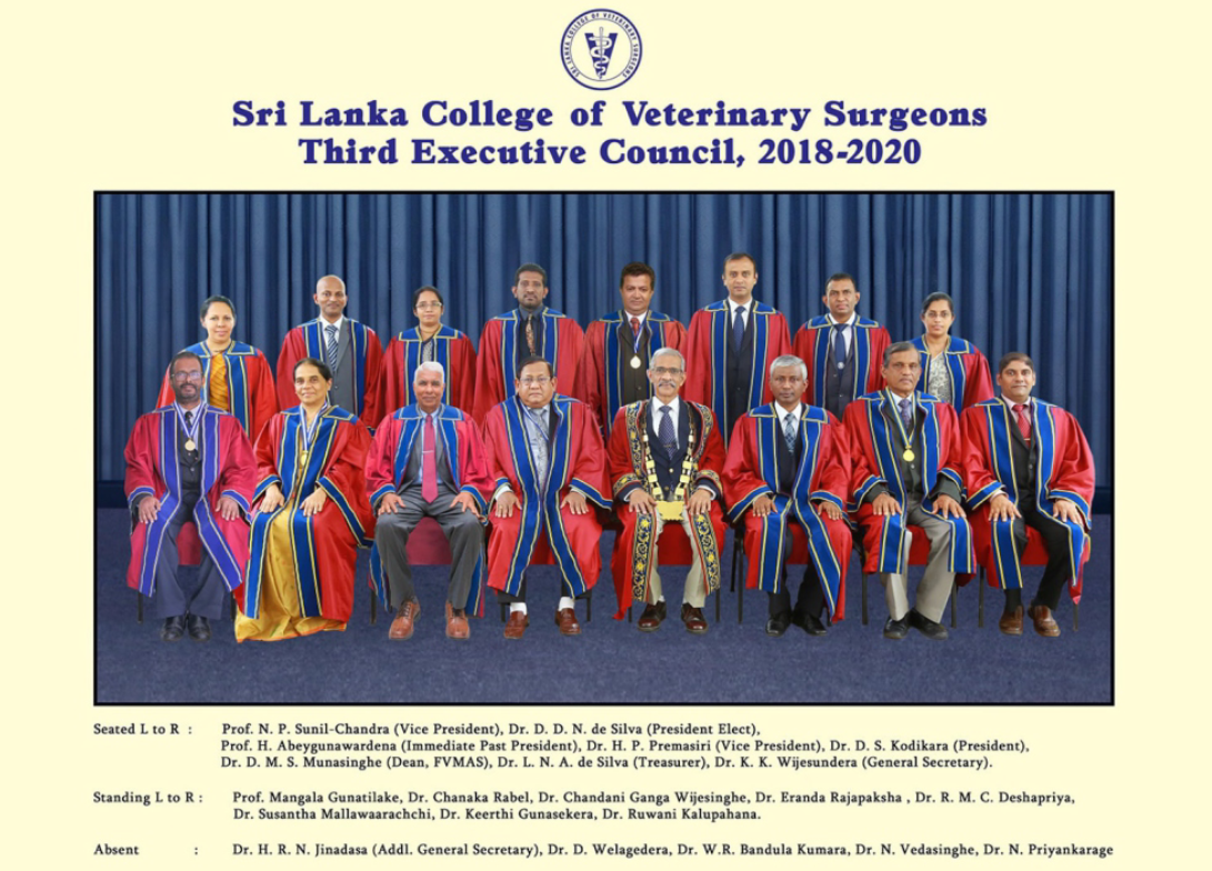 Prof. R.M.S.B.K. Ranasinghe (Treasurer), Prof. E. Pathirana (General Secretary), Prof. L. G. S. Lokugalappatti (President-Elect), Prof. P.G.A. Pushpakumara (Vice President), Prof. N.P. Sunil-Chandra (President), Dr. D. M. S. Munasinghe (Vice President), Prof. M. Gunatilake (Immediate Past President), Dr. J.K. Gunasekera (Editor), Dr. K.K. Sarath (Director General/DAPH)