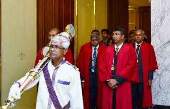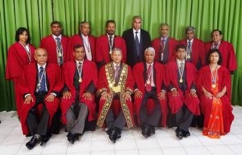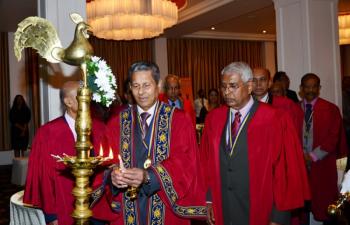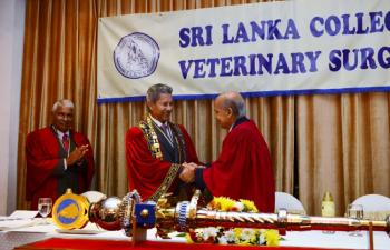 The inauguration and induction ceremony of the Sri Lanka College of Veterinary Surgeons (SLCVS) was held on 30th October 2015 at the Kingsbury Hotel, Colombo. Induction of the Founder President, Dr. Oswin Perera, and awards of certificates of enrolment to Founder Fellows, Founder Members and Honorary Fellows, were made at this ceremony. The Chief Guest was Prof. Carlo Fonseka, President, Sri Lanka Medical Council, and the Guest Speaker was Dr. Sam Thevasagayam, Director, Livestock Initiative, Bill & Melinda Gates Foundation, USA. The ceremony was attended by over 130 persons, including Members/Fellows, their spouses, guests, sponsors and well-wishers